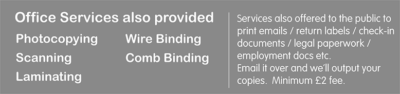 Book Publishing Catalogues Price Lists Business Stationery Flyers and Leaflets Menus Posters Booklets Signage Notices Calendars Labels Point of Sale NCR Invoices Order Pads Receipts Limited Edition Art Prints Greetings Cards Vouchers Forms Wedding Stationery Invitations Presentation Folders Charity Buckets Certificates Manuals